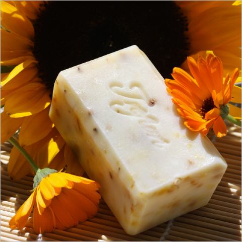 Inhaltsstoffe: Wasser, Sonnenblumenöl*, Kokosöl*, NaOH, Olivenöl*, Mariendistelöl*, Bienenwachs*, Hanföl*, reine ätherische Öle, Ringelblume*, spagyrische Ringelblumen Essenz.
