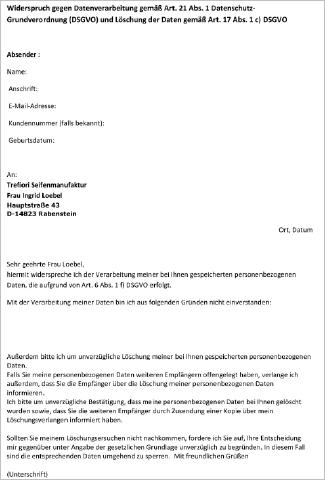 Sollten Sie meinem Löschungsersuchen nicht nachkommen, fordere ich Sie auf, Ihre Entscheidung mir gegenüber unter Angabe der gesetzlichen Grundlage unverzüglich zu begründen. In diesem Fall sind die entsprechenden Daten umgehend zu sperren.